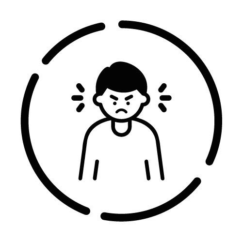 - Unzufriedenheit – Person mit unzufriedenem Gesichtsausdruck und Stresslinien um den Kopf, die emotionale Belastung zeigt.