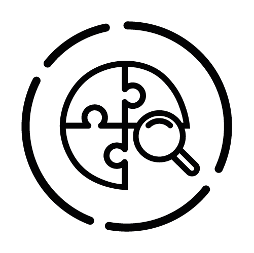 - Suche nach Fehlendem / Sinnsuche – Puzzlestück mit einer Lupe, das den Prozess des Suchens und Findens einer Lösung oder eines Sinns im Leben symbolisiert.