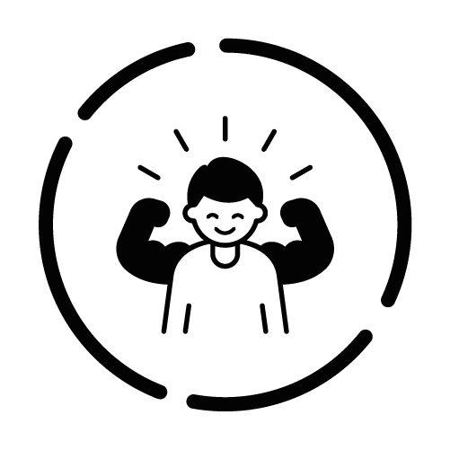 - Selbstbewusstsein – Person mit erhobenen Armen und strahlenden Linien um den Kopf, die Stärke und Selbstvertrauen vermittelt.