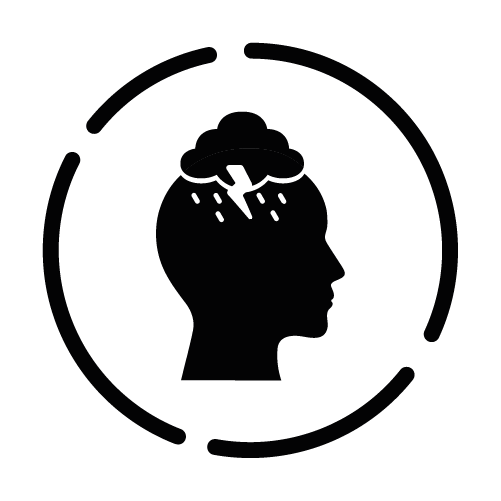 - Traumatische Erlebnisse – Kopf mit einer dunklen Wolke darüber, was emotionale Narben und traumatische Erfahrungen symbolisiert.