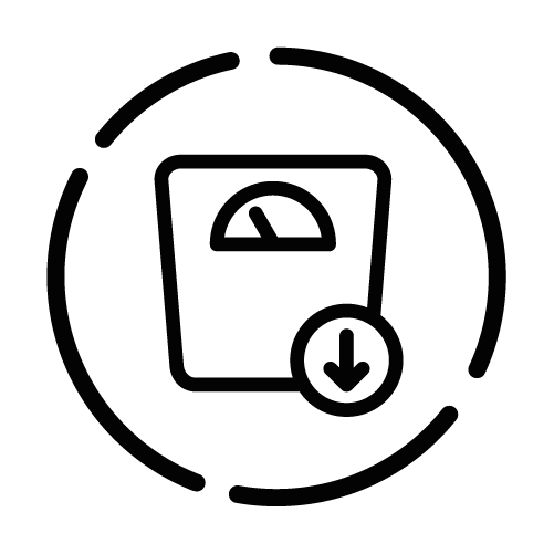 - Gewichtsreduktion – Waage mit einem nach unten gerichteten Pfeil, das den Wunsch und den Prozess der Gewichtsabnahme darstellt.
